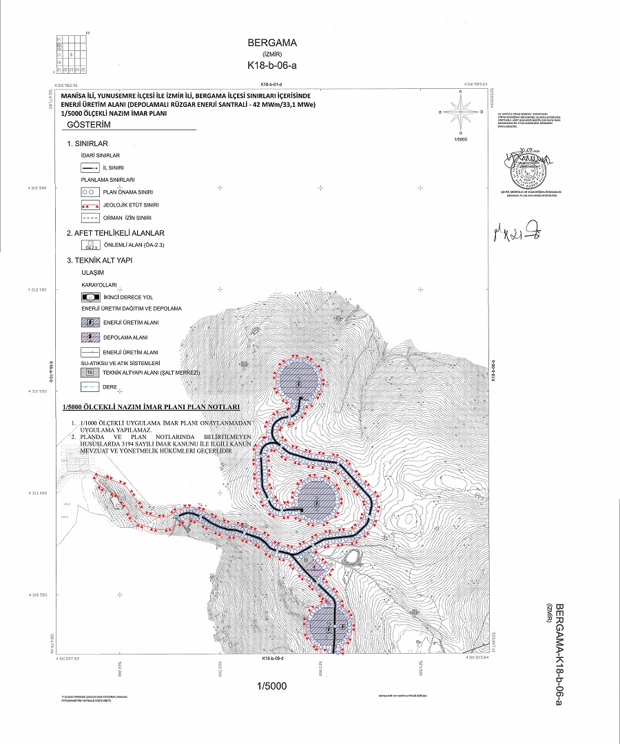 Manisa İli, Yunusemre İlçesi, Pınarköy ve Uzunlar Mahalleleri ile İzmir İli, Bergama İlçesi, Bayramcılar, Bekirler, Kocahaliller ve Tavukçukuru Mahalleleri sınırları içerisinde yer alan EPDK’nın 13.07.2023 tarihli ve ÖN/11958-19/05713 numaralı Üretim Ön Lisansına sahip Çayırlar Rüzgar Enerji Santrali Projesi kapsamında toplam kurulu gücü 42 MWm/33,1 MWe olan 6 adet Türbin Alanı ile Şalt Merkezi ve toplam 33,1 MWe kurulu güce yönelik Elektrik Depolama Ünitesi ve bağlantı yollarına ilişkin hazırlanan 1/5000 ölçekli Nazım ve 1/1000 ölçekli Uygulama İmar Planı 3194 sayılı İmar Kanunu’nun Ek 11 madde (h) bendi kapsamında Bakanlığımızca onaylanmış olup, onaylanan NİP-001118122 ve UİP-001118123 Plan İşlem Numaralı 1/5.000 ölçekli Nazım İmar Planı ve 1/1000 ölçekli Uygulama İmar Planı paftaları ile plan açıklama raporları 12.01.2026-11.02.2026 tarihleri arasında, Müdürlüğümüz 2.kat ilan panosunda, https://manisa.csb.gov.tr/ internet adresinde ve E-Plan Otomasyon sisteminde eş zamanlı olarak ilan edilmektedir.